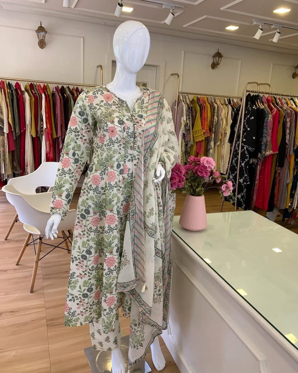 Three Piece Gown Design: Skin Print and Karchupi Fabrics: Kamiz: Soft Cotton Selowar: Soft Cotton Orna: Cotton Kamiz Long: 45 Body Size: M, L, XL, XXL Size Measurement: M=36-38 L=40-42 XL=42-44 XXL=46