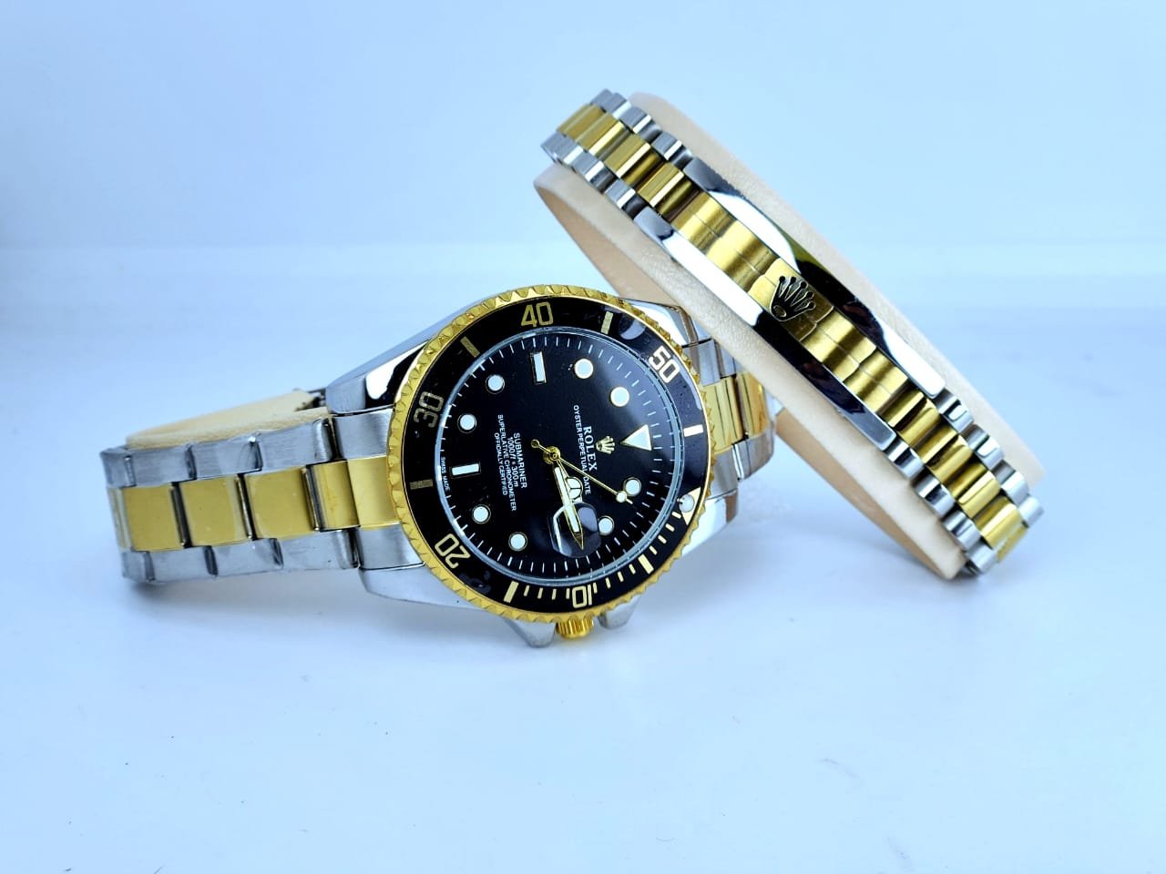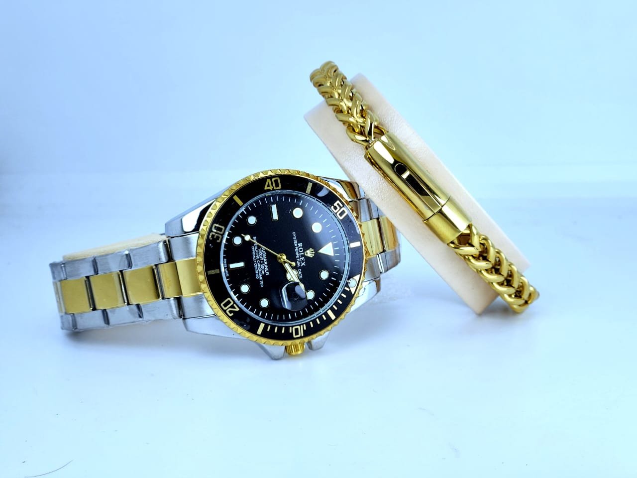 Rolex Submariner. Oyster Perpetual DateJust with superlative chronometer function and has a chain strap.  steel strap waterproof quartz watch Imported: No  Special Function: Other Display  Type: Pointer Applicable  Audience: Male  Style: Fashionable  Patent Source: No Waterproof Movement Type: Quartz Movement  Origin: Other Movement  Crown Type: Spiral Crown  Material: Mineral Reinforced Glass Mirror  Surface Bucklet