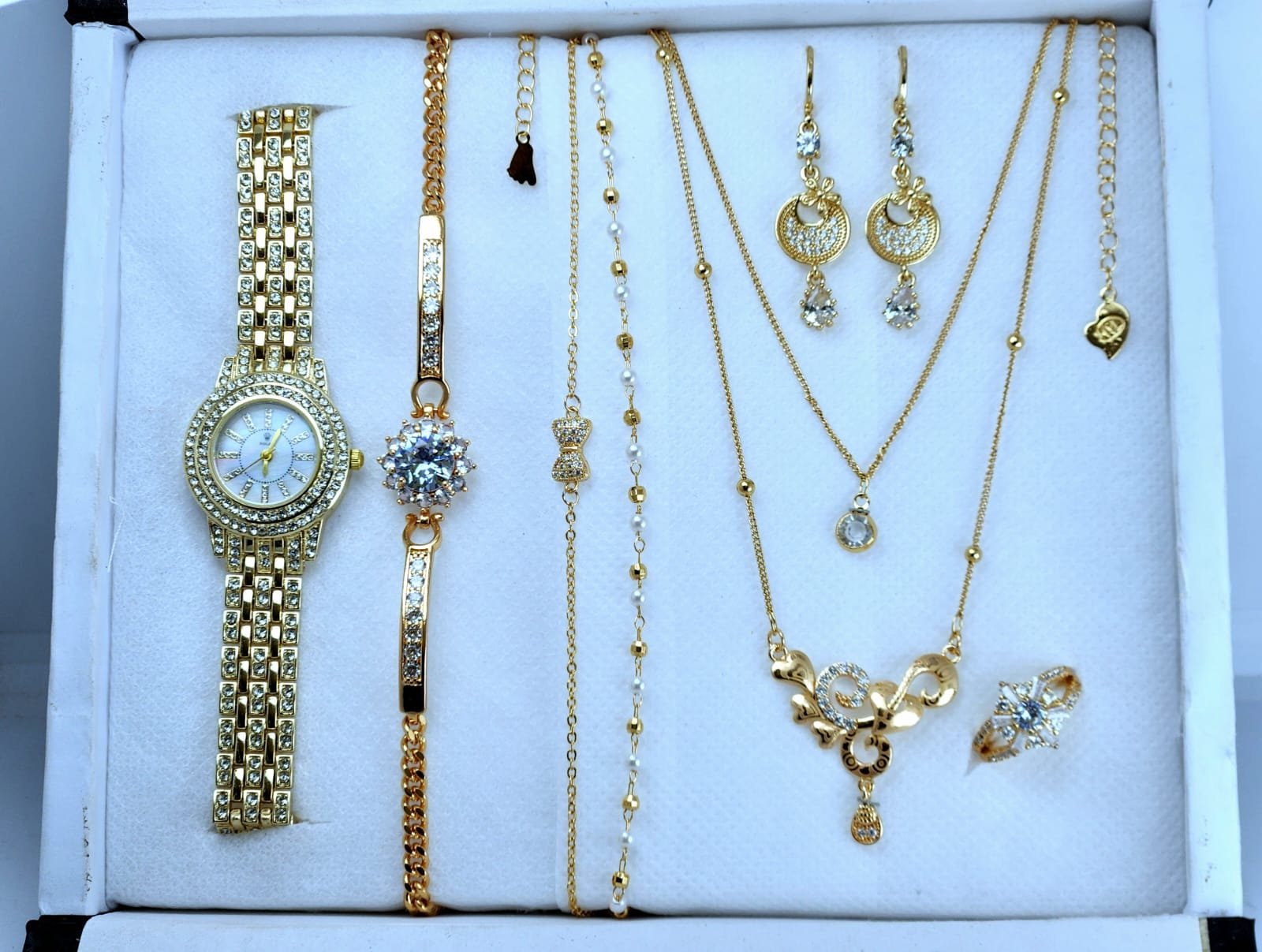 Women Watch Combo কম্বো প্যাকে যা যা থাকছে👇 ১.ঘড়ি ২.কানের দুল ৩.গলার লকেট ৪.বেসলেট ৫.আংটি ৬.চেইন ❣️সাথে পাবেন একটি আকর্ষণীয় বক্স❣️